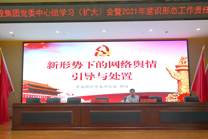 6月22日下午,贛州城投集團舉辦黨委中心組學(xué)習(xí)(擴大)會暨2021年意識形態(tài)工作責(zé)任制專題培訓(xùn)。市委網(wǎng)信辦副主任柳邁應(yīng)邀授課,集團黨委副書記黃家偉主持并講話,集團全體高管出席,各黨支部(黨總支)書記及支委成員、支部宣傳干事,各部門、子公司負責(zé)人及信息員等聆聽學(xué)習(xí)。