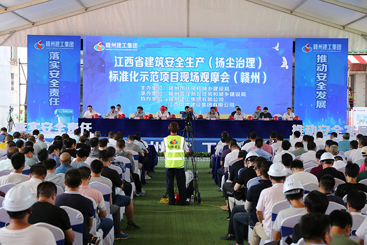 日前,2021年江西省建筑施工安全生產(chǎn)(揚塵治理)標準化示范項目現(xiàn)場觀摩會(贛州)在贛州城投集團星洲萃苑(一期)項目工地成功舉辦,會議主題為“落實安全責任,推動安全發(fā)展”。市住建局、市應急局、蓉江新區(qū)管委會、贛州城投集團有關領導,以及來自各縣(市、區(qū))住建主管部門分管領導和安全監(jiān)督機構負責人,市本級在建項目企業(yè)代表,新聞媒體記者等共計200余人走進項目施工現(xiàn)場,重點對星洲萃苑(一期)項目建筑施工安全生產(chǎn)標準化、綠色文明施工、智慧工地管理等方面進行了全方位的觀摩學習。