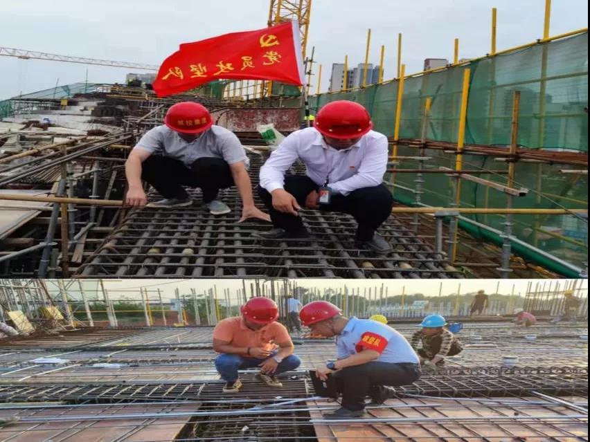 項(xiàng)目部在柱頂環(huán)梁模板支撐體系搭設(shè)、鋼筋綁扎攻堅(jiān)中,遇到了斜梁鋼筋交叉、節(jié)點(diǎn)處鋼筋極密的特殊情況,同時(shí),柱頂環(huán)梁超重超高,且為雙曲面結(jié)構(gòu),施工難度大、定位難度大。為破解這些難題,工程管理公司派駐項(xiàng)目部的黨員精心組織各參建單位,積極實(shí)施“支部建在項(xiàng)目上、黨旗飄在陣地上、黨員沖在一線上”的項(xiàng)目黨建工作法,在施工過程中,臨時(shí)聯(lián)合黨支部黨員及參建各方全程監(jiān)督旁站,實(shí)現(xiàn)全過程安全、質(zhì)量管控,達(dá)到了預(yù)期計(jì)劃目標(biāo)。