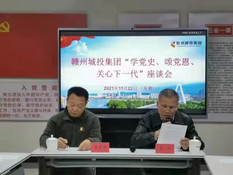 近日,贛州城投集團(tuán)關(guān)工委召開(kāi)"學(xué)黨史、頌黨恩,關(guān)心下一代"座談會(huì),集團(tuán)黨委副書(shū)記黃家偉出席座談會(huì)并講話(huà),原集團(tuán)紀(jì)委書(shū)記、離退休老員工代表奚平,以及集團(tuán)部分青年員工代表等15人參加座談。