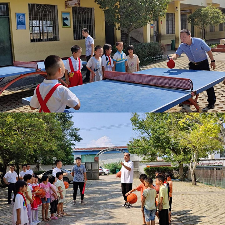 本次活動分兩個階段開展。第一階段,以愛國主義教育為切入點,分別在良田小學和東山小學開展。黃家偉帶領(lǐng)團員與全體師生開展升國旗、唱國歌活動,在激昂的歌聲中向國旗敬禮、向祖國致敬。隨后,黃家偉代表集團黨委向兩所學校捐贈物資,用于改善當?shù)剞r(nóng)村教學條件。在學生們課間休息時間,團員們還陪伴學生們上了一堂豐富有趣的體育課。團員們還與學校老師進行交流座談,表達了關(guān)心與寄語。